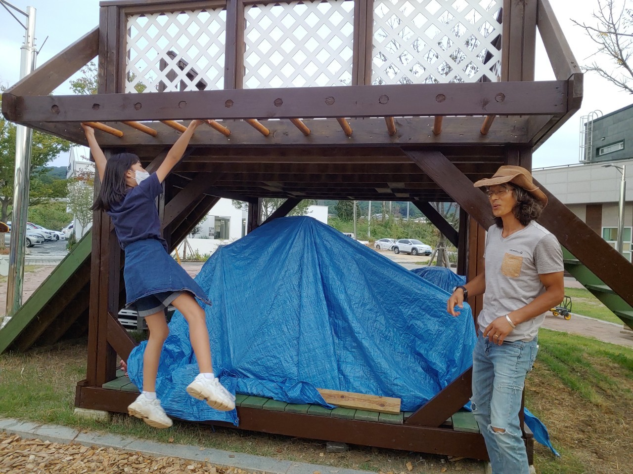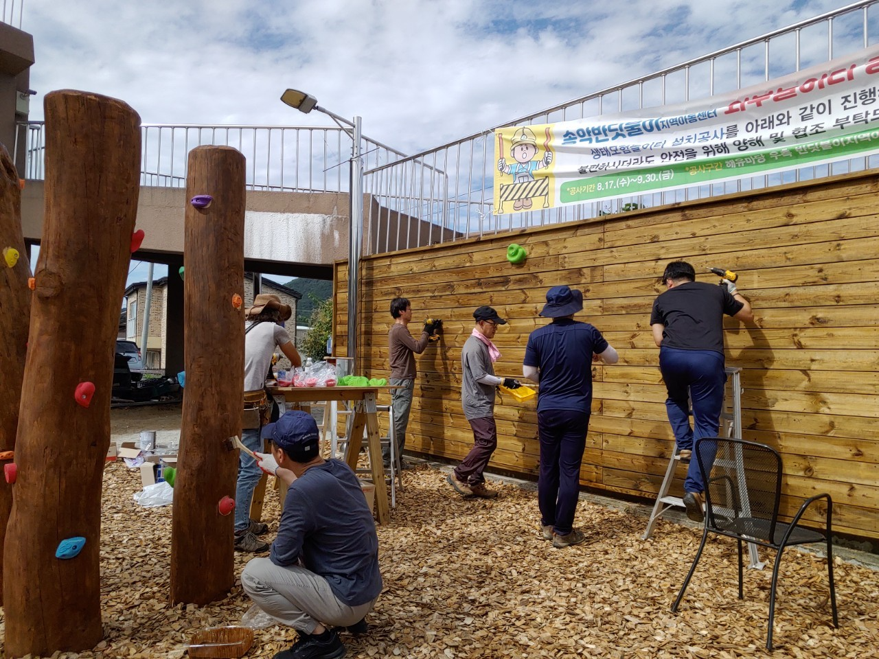 모험놀이터를 만드는 마지막 작업에 학부모님들 송악동네 조합원들 지역주민들 아이들까지~~